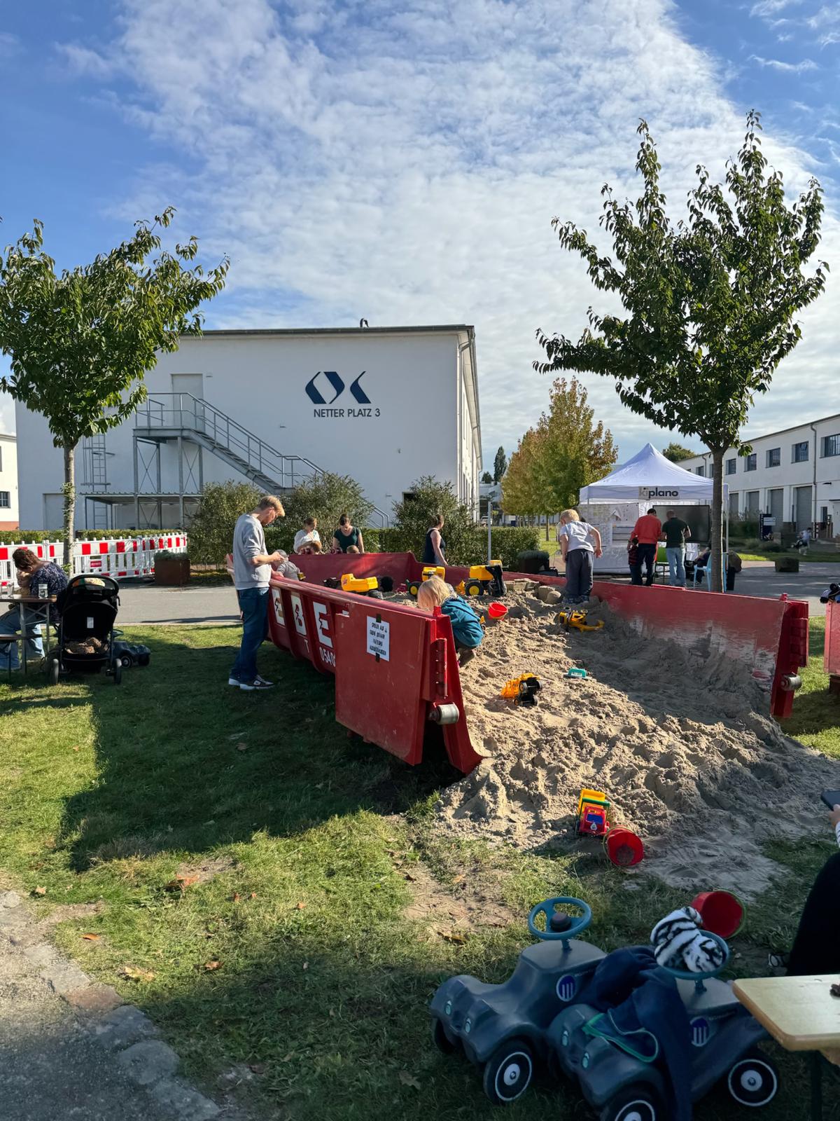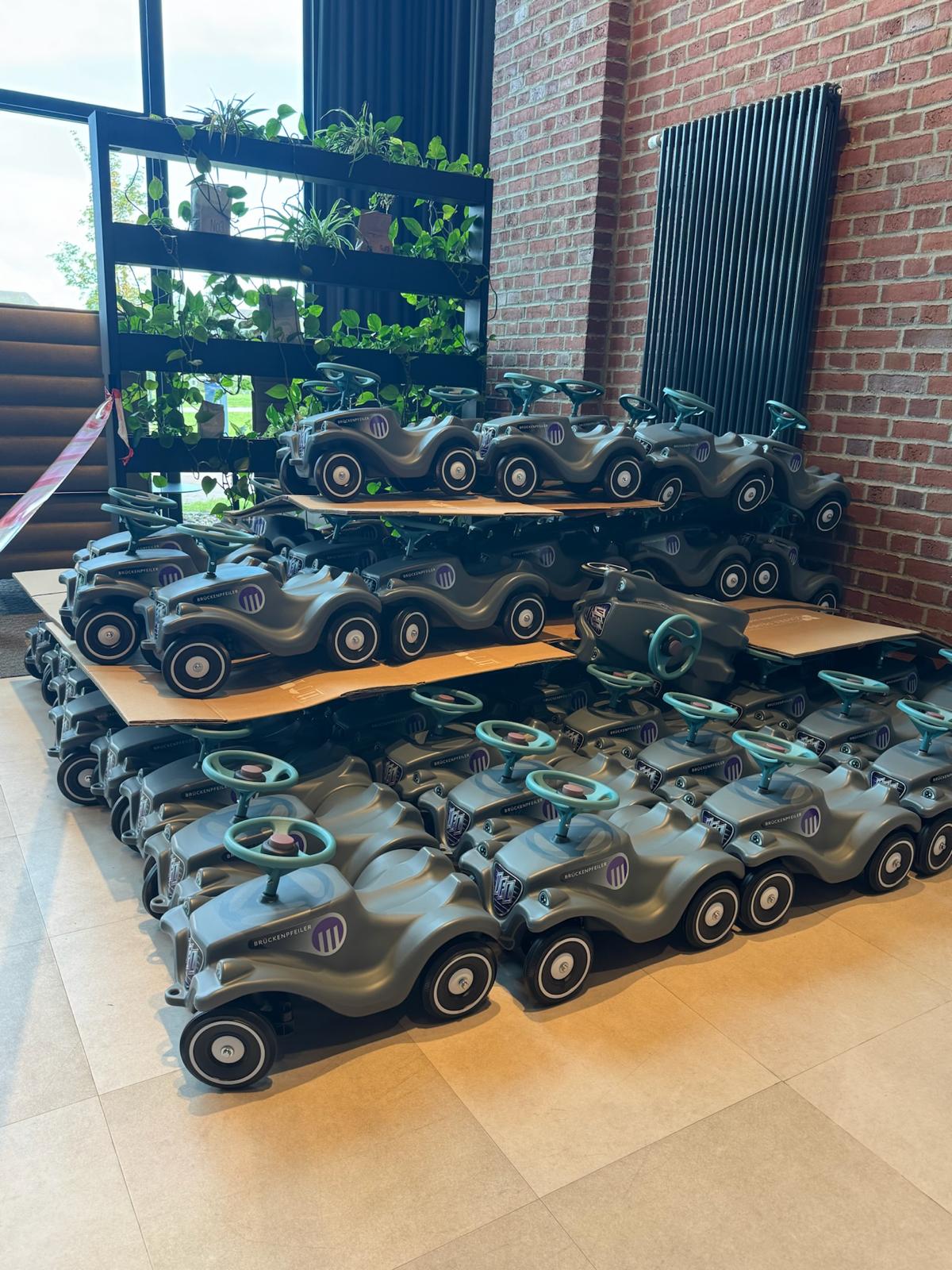 Am Sonntag, 28.09.2025, war der Netter Platz fest in Kinderhand: 110 Kitas holten jeweils zwei original Eco Bobbycars von BIG ab – gespendet von den Brückenpfeilern!